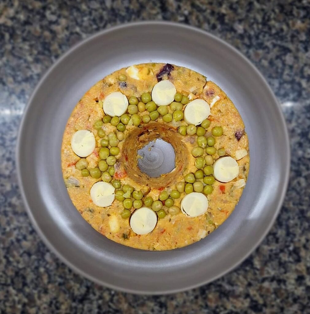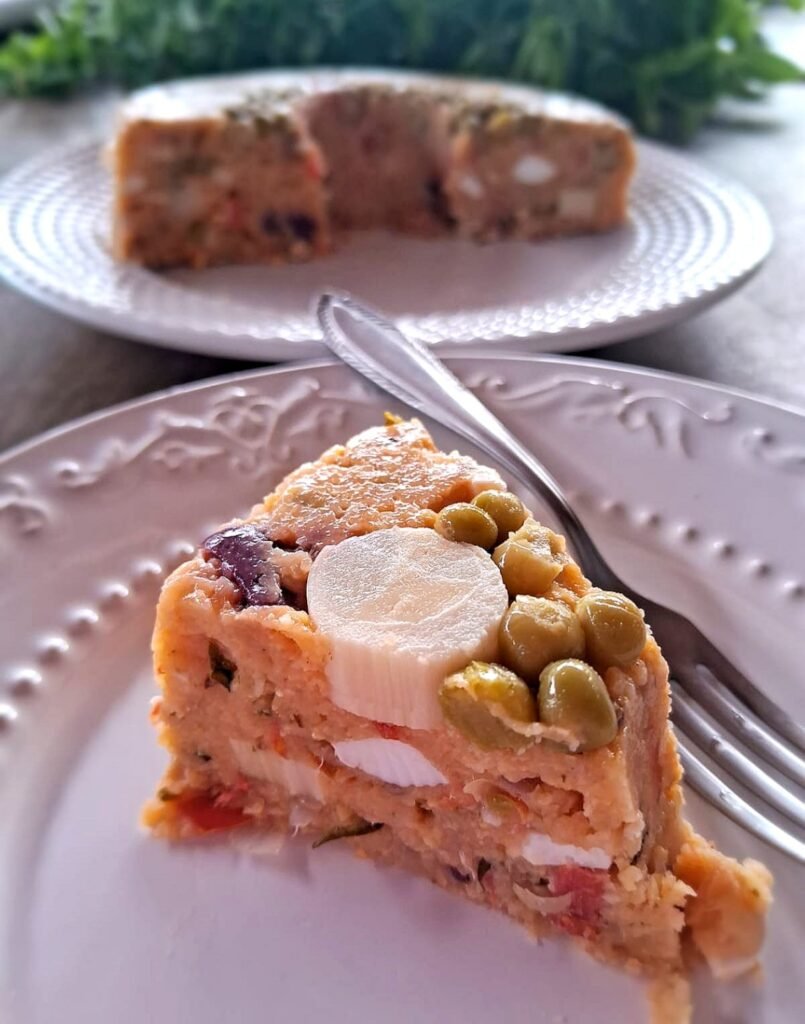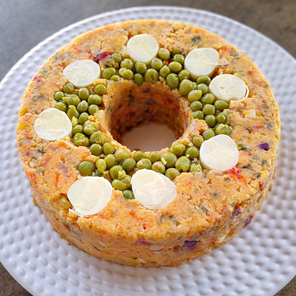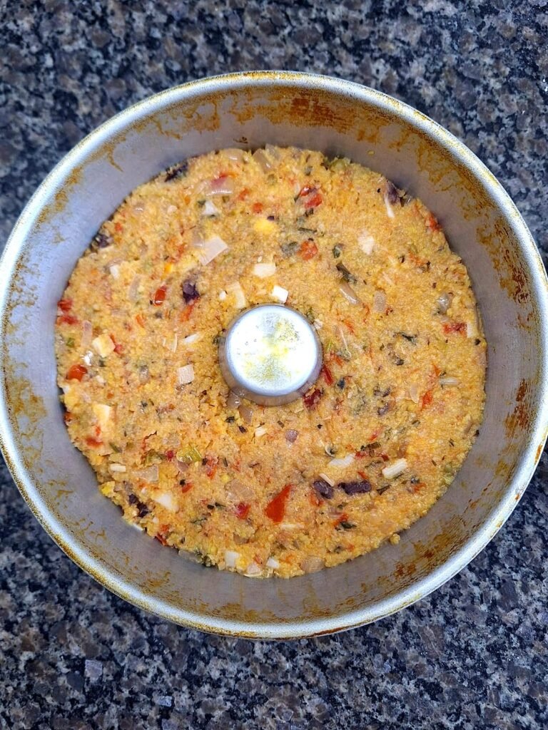 - Unte a forma e despeje a massa do cuscuz.